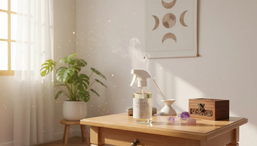 El Spray de Salvia Blanca (Salvia apiana) es un ambientador botánico elaborado con extracto/aroma natural de salvia blanca en base hidroalcohólica, diseñado para perfumar y acompañar rutinas de limpieza energética sin humo.