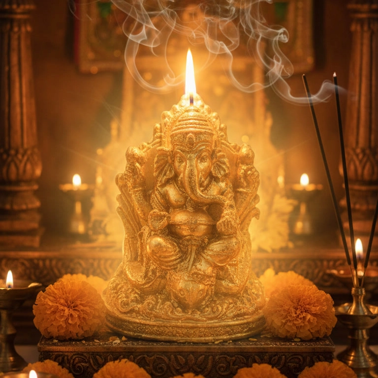 La Vela Ganesha es una vela decorativa moldeada en forma de Ganesha, símbolo universal de prosperidad, eliminación de obstáculos y protección. Su acabado dorado y sus relieves detallados la convierten en una pieza ideal para quienes buscan un elemento espiritual con presencia y armonía visual.