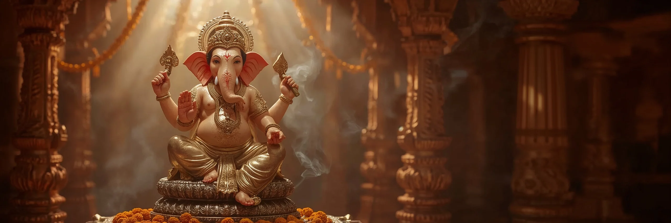 Ofrendas típicas: flores, incienso, dulces (modak/laddu) y frutos. Mantén una actitud de silencio y agradecimiento durante los aarti (cantos).